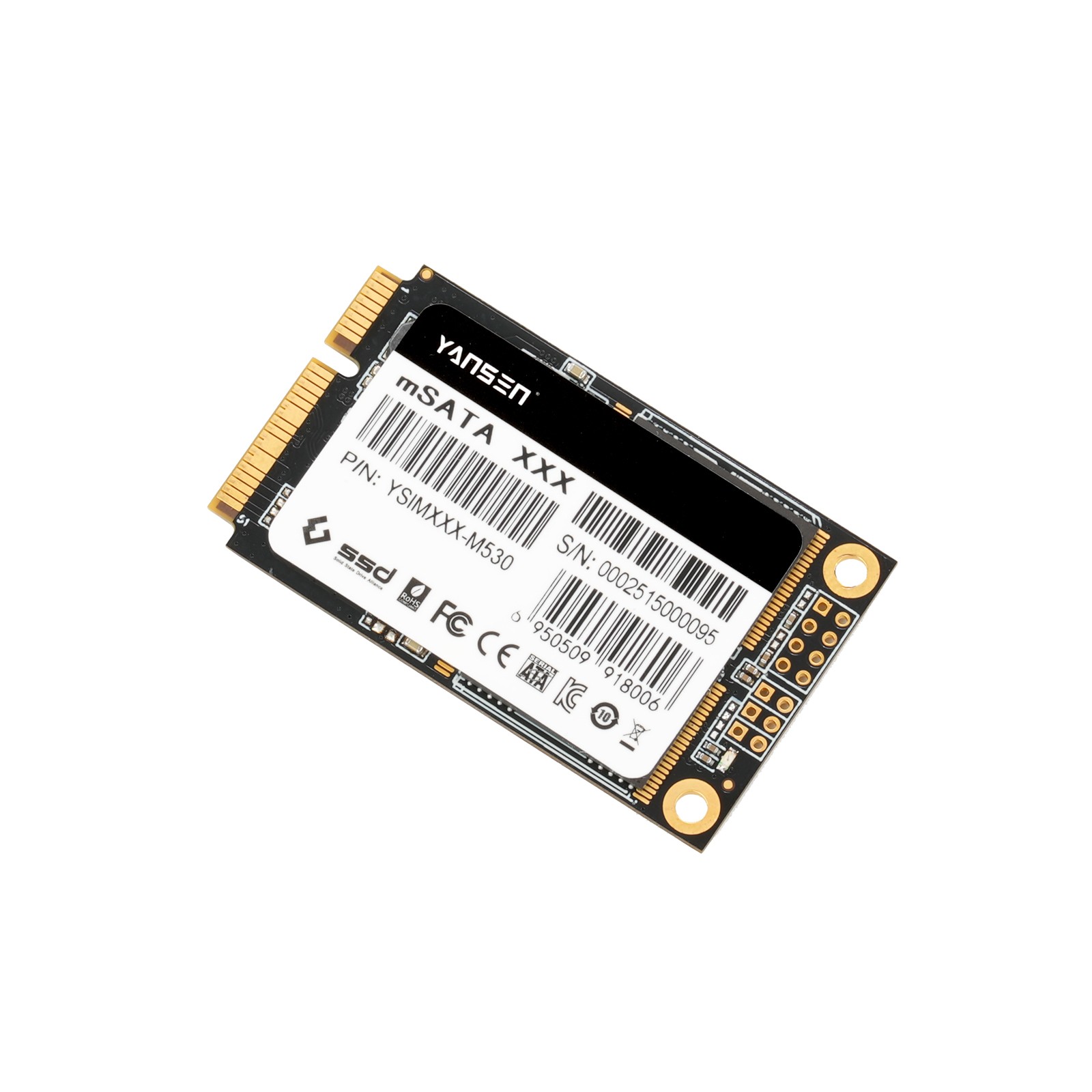 YSIMXXX-M530產品采用2通道SSD控制器和3D NAND Flash,接口尺寸為 mSATA,小巧的尺寸讓該產品可以集成在平臺內。