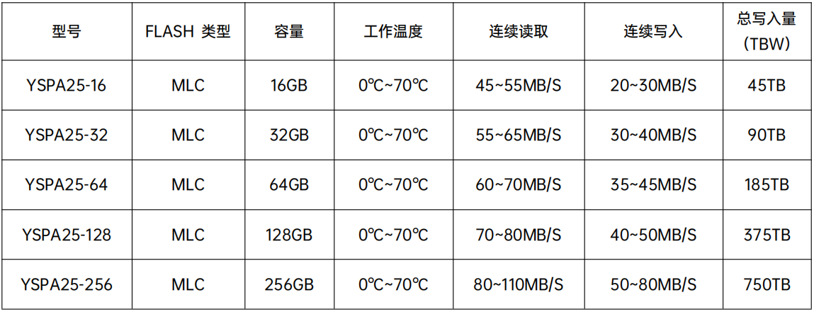 YSPA25-XXX是一款高性能高可靠性的存儲設備,純粹由半導體器件和非易失性 NAND Flash芯片構成,基于NAND Flash技術,解決機械硬盤傳輸速度不高的瓶頸,內部沒有機械部件,解決抗震防跌落的問題。它擁有和機械硬盤完全相同的連接端口,因此可以 完全替換機械硬盤。