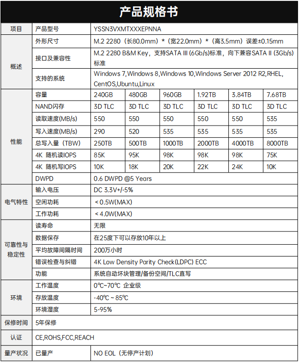 支持容量:240GB~7.68TB